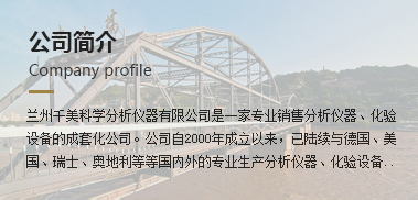 蘭州千美科學(xué)分析儀器有限公司是一家專業(yè)銷售分析儀器、化驗(yàn)設(shè)備的成套化公司。公司自2000年成立以來,已陸續(xù)與德國、美國、瑞士、奧地利等等國內(nèi)外的...